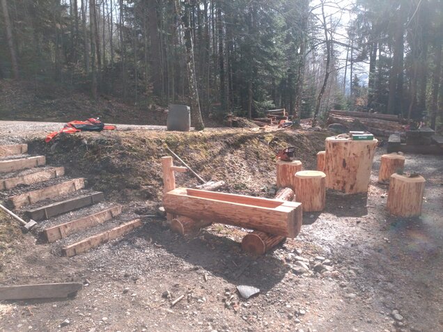 Das im obigen Bild dargestellte Waldsofa befindet sich im Gandwald der Burgergemeinde Reutigen und wurde auf Wunsch des Kindergartens und der Schule Reutigen hergestellt.